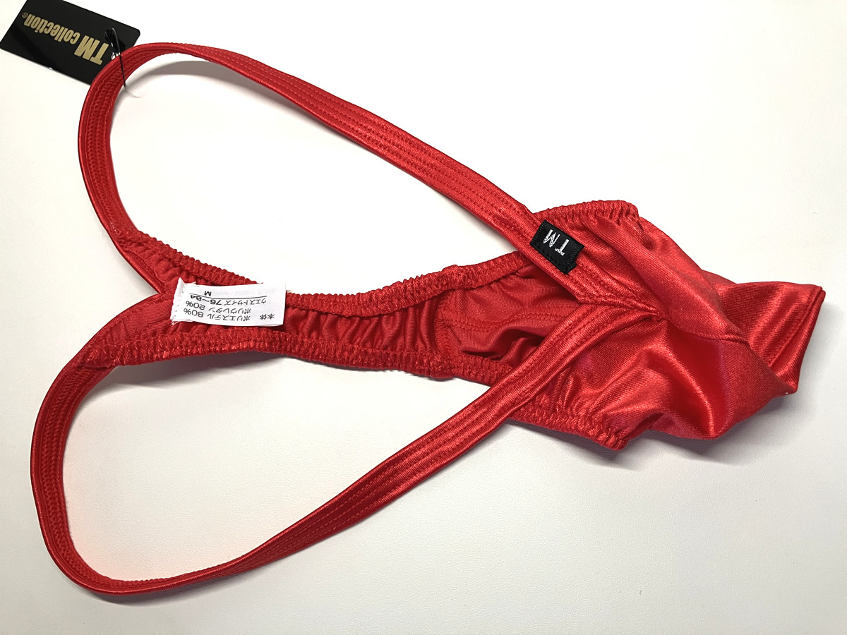TMコレクションのメンズTバック。濡れたような光沢が綺麗な水着素材(WET)を使用。