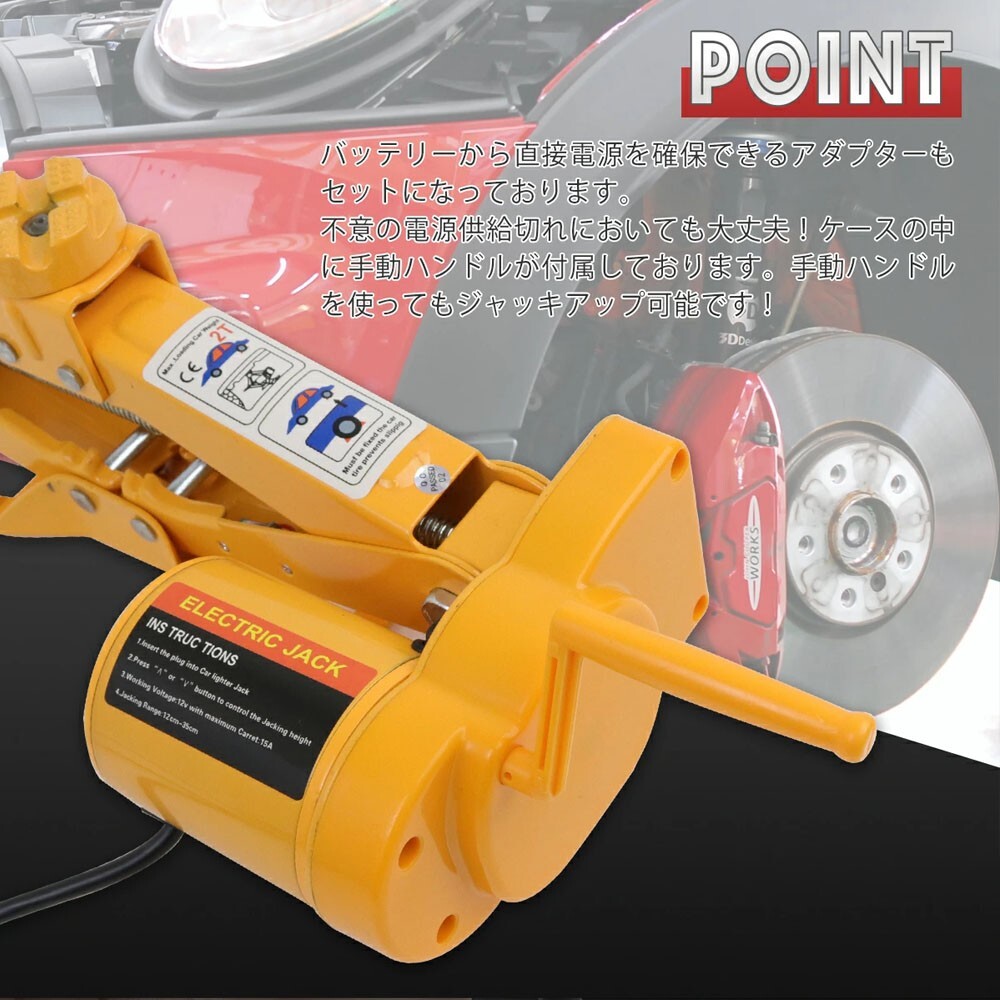 シガ-電源でジャッキアップが出来る2000kg電動ジャッキ!