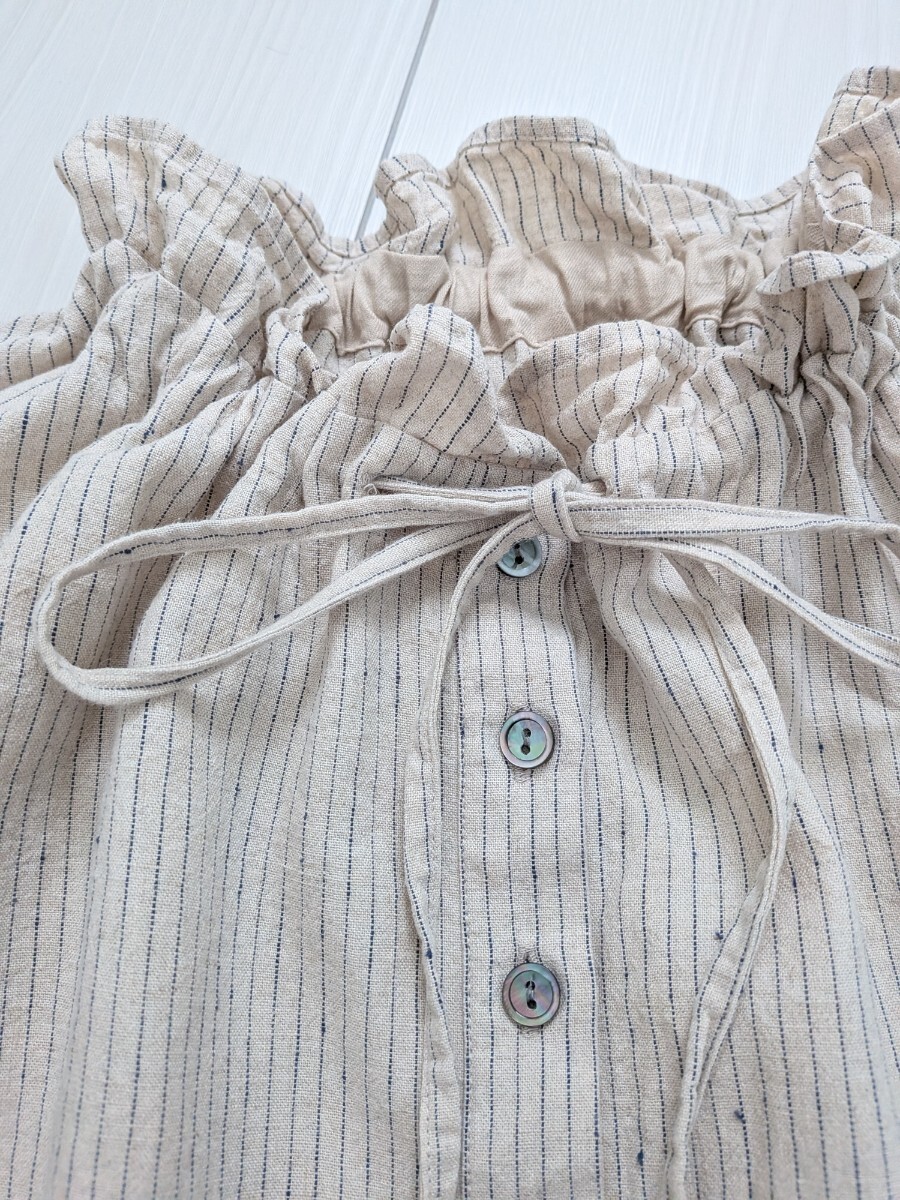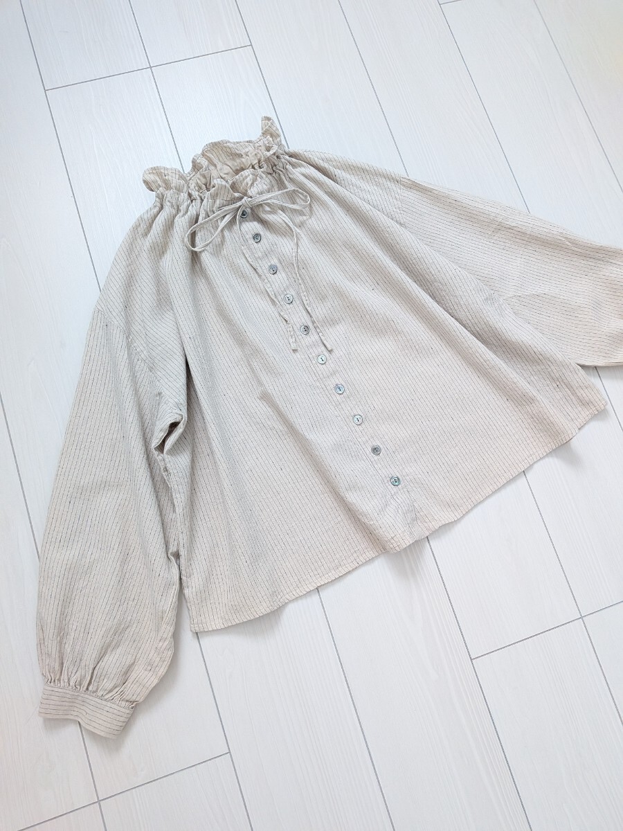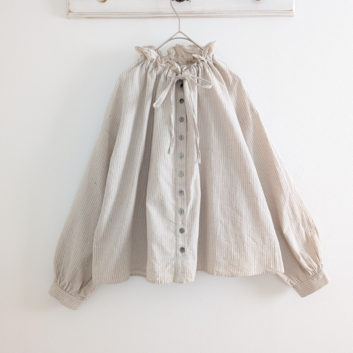 YARRA リネン フリル襟 ブラウス シャツ 綿 麻 多ボタン ヤラ 長袖 キナリノ ナチュラル服 横幅ゆったり リボン ギャザー シェルボタン 收藏