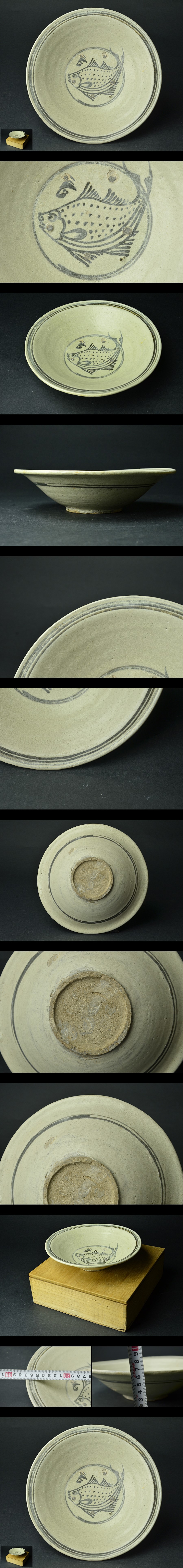 【YB】No.1. 15-16世紀 安南鉄絵魚紋鉢・桐箱付属 ★ベトナム古玩骨董25Y842-5 收藏