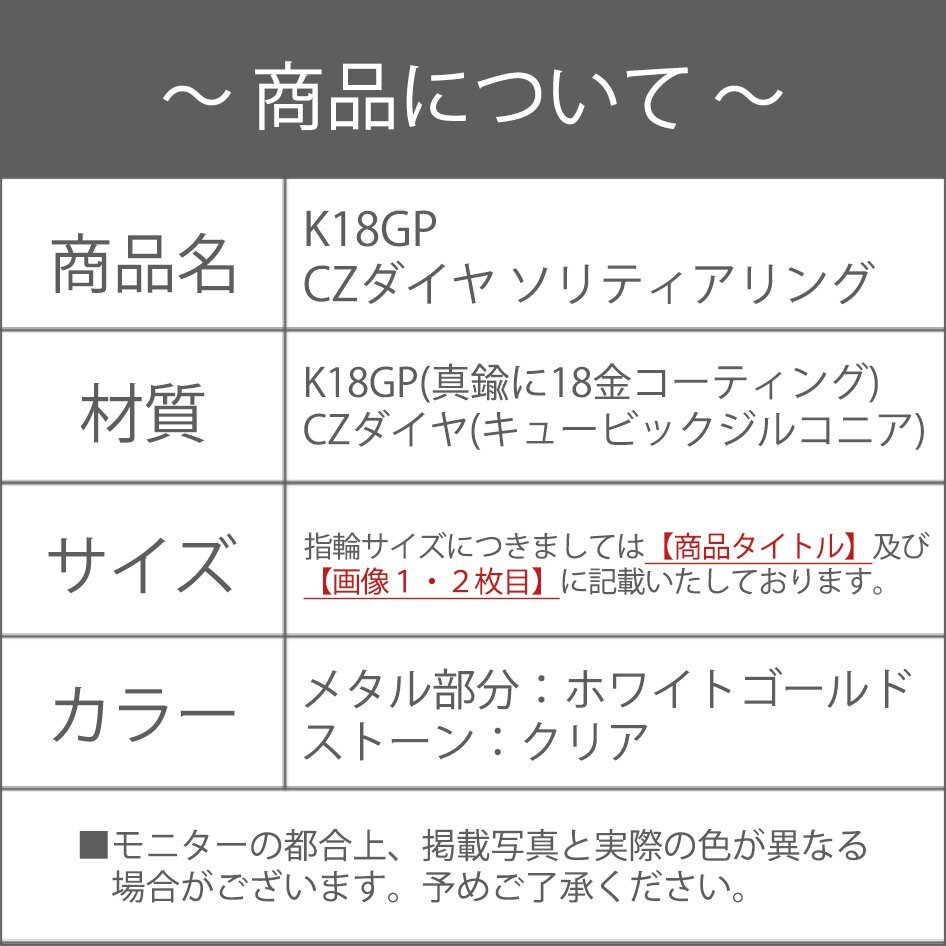 6号 / 新品 指輪 K18GP 一粒 リング レディース シルバー 18金 ホワイトゴールド ダイヤ CZ シンプル 人差し指 中指 薬指 プレゼント 女性 收藏