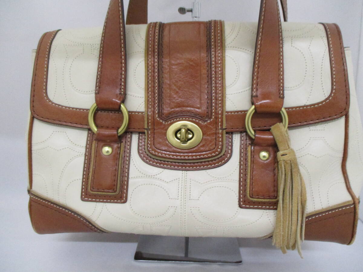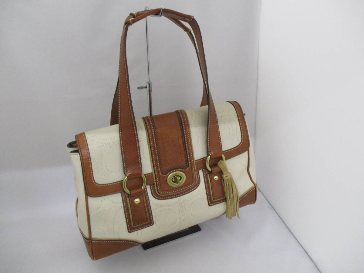 コーチ ハンドバッグ ホワイト系×ブラウン系 レザー シグネチャー 11332 COACH 【8625】 收藏