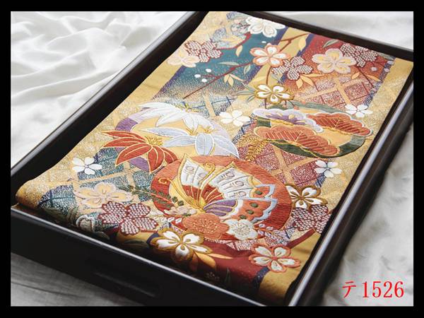 蔵【テ1526】厳選逸品 振袖可 花蝶古典紋 淑やかに香る気品 正絹純金糸全通高級美術袋帯 ◇検◇簪着物名古屋帯和装小物帯締め 收藏