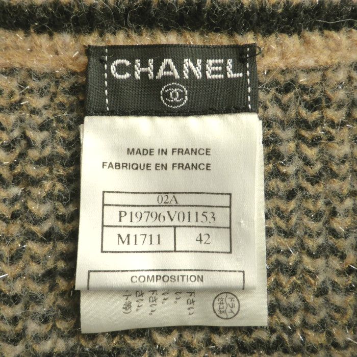シャネル (CHANEL) ウール ニット ノースリーブ ジップ フーディ グリッター パーカー 42 ブラック×アイボリー P19796 ウェア(中古) 收藏