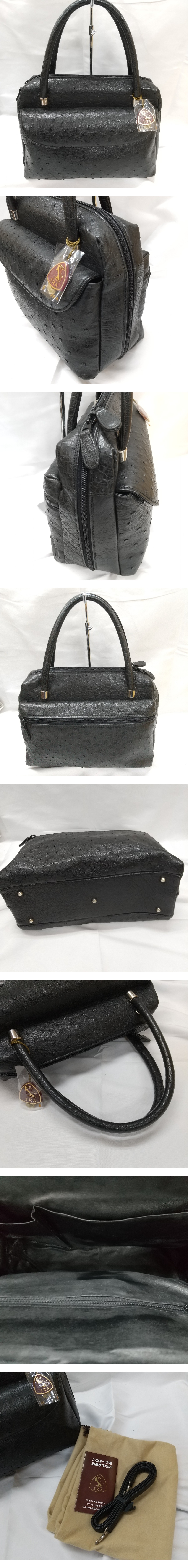 ◎未使用/保管品◎JRA認証 高級オーストリッチ革 2WAYハンドバッグ OSTRICH ショルダーストラップ付 ブラック 即発送 收藏