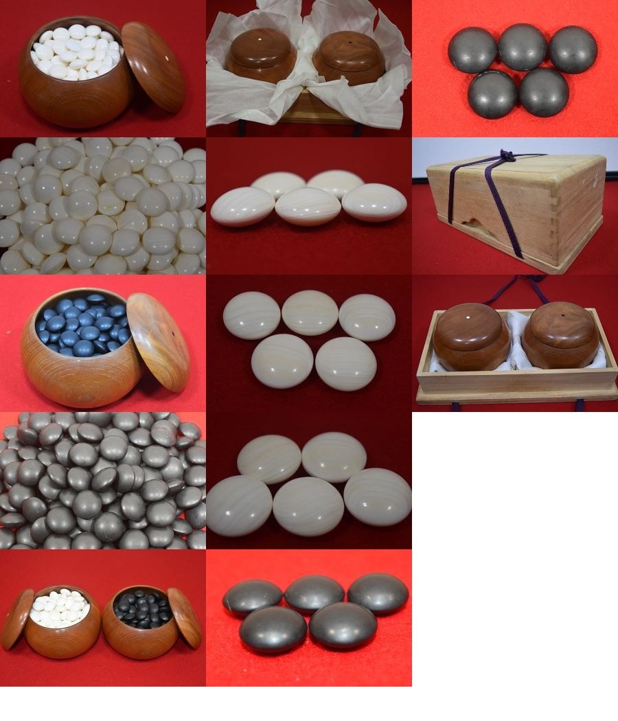 【光成】碁石「日向製・本蛤36号玉石・那智黒36号玉石・欅碁笥セット」日本製・高級品・美品③