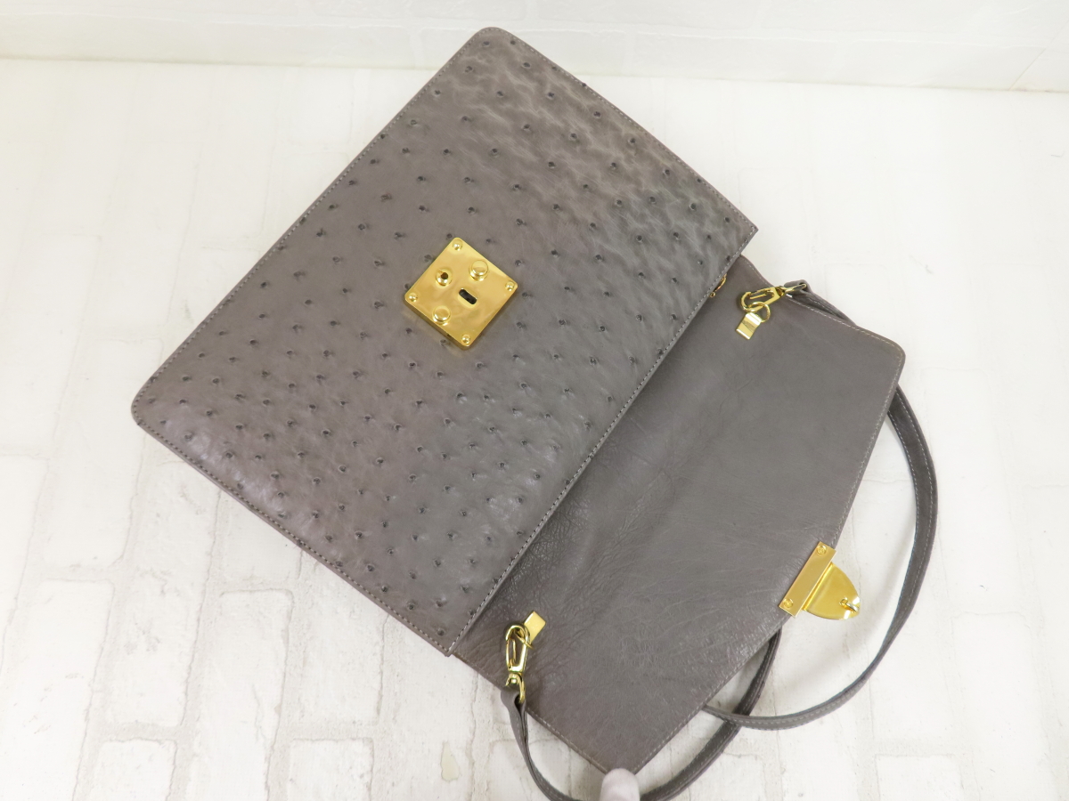 ◆超美品◆GENUINE◆オーストリッチ 本 だちょう 革◆2way ハンド ショルダー バッグ◆グレージュ ゴールド金具◆AMAZONES◆A14704 收藏