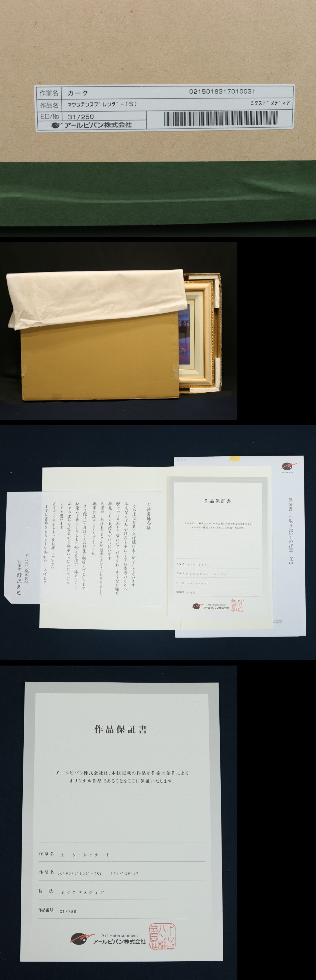 11900■【真作】カーク・レイナート 「マウンテンスプレンダー」 ミクスドメディア サイン 保証書 ファンタジー画家 オーロラアート 額装 收藏