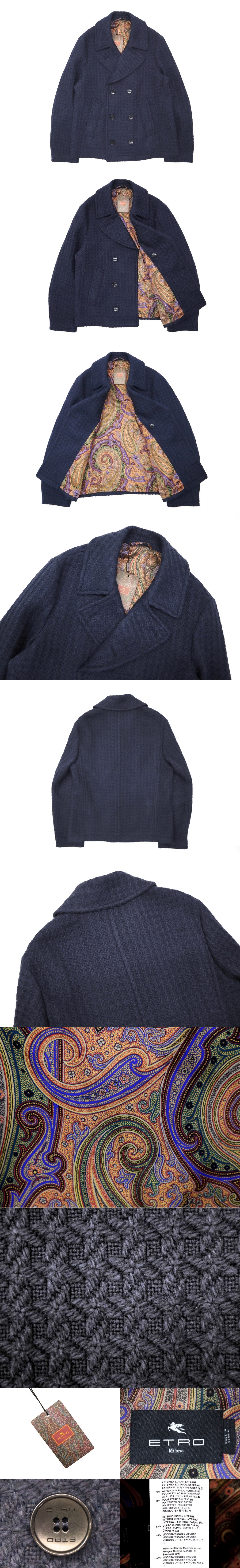 【商 品】・・・35万新品◆52=L◆エトロ◆ペイズリー裏地 立体千鳥格子 ダブルブレストPコート 紺ネイビー【ETRO】