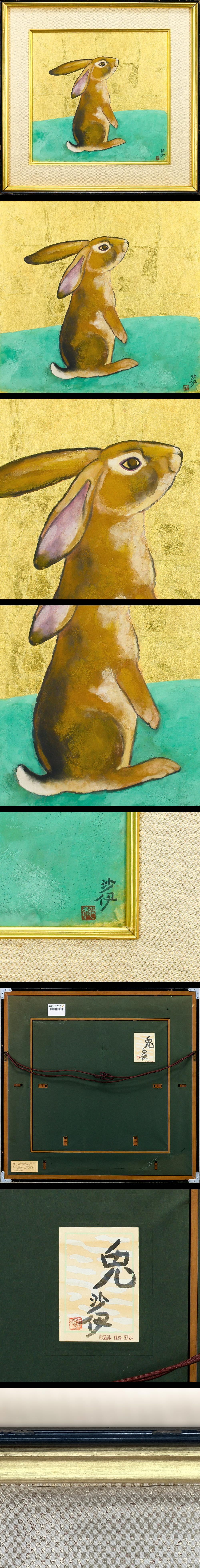 【真作】【WISH】森田沙伊「兎」日本画 約8号 金箔・金泥仕様 共シール 凛とした愛らしさ 〇日本芸術院会員 日本芸術院賞 #26012726 收藏