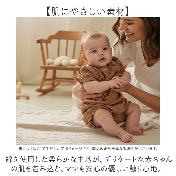 | 商品説明 | ・・【選べる2タイプ】 ・くしゅっと可愛い生地感が魅力のベビー服。 ・【成長に合わせて選べる】 ・タイプAのロンパースと、タイプBのセパレートから選べて、赤ちゃんの月齢に合わせて使える便利さ♪ ・【肌にやさしい素材】 ・綿を使用した柔らかな生地が、デリケートな赤ちゃんの肌を包み込む、ママも安心の優しい触り心地。 ・【キュートな質感】 ・くしゅっとした愛らしい生地感が、着るだけで可愛さを引き立てる、思わず写真を撮りたくなる仕上がり! ・【ナチュラルな色合い】 ・優しいナチュラルカラーだから、どんなシーンにも馴染んで、コーディネートしやすい落ち着いた印象〇 |