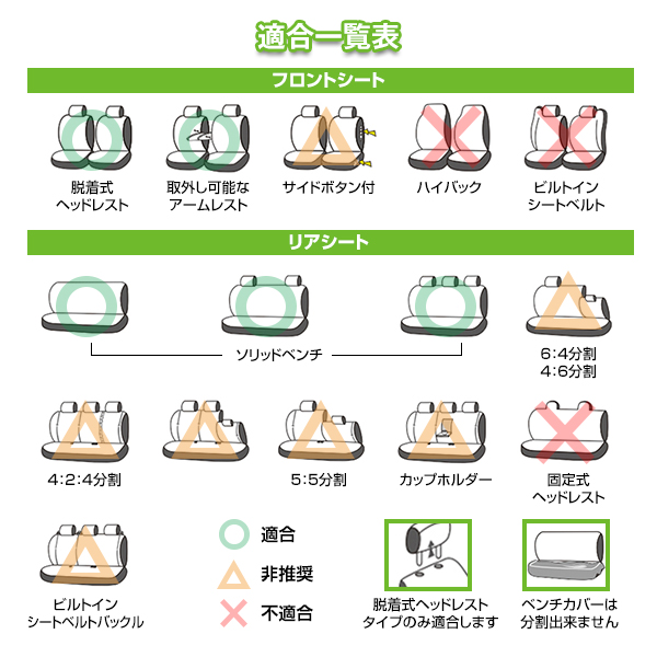 ◆セット内容:フロント 2席分 / ヘッドレスト 2個 / 固定フック