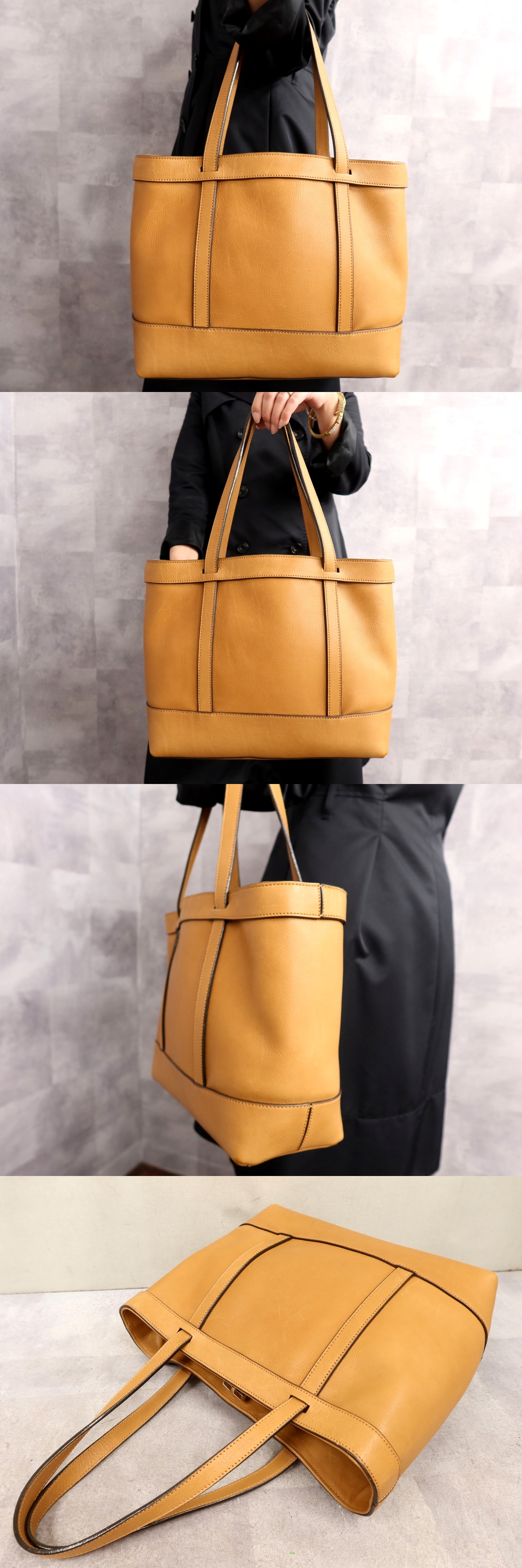 ●超美品●MAURO GOVERNA マウロ ゴヴェルナ●カーフ レザー 本革●トート バッグ●ライトブラウン●シルバー金具●A4 書類 収納●Js65210 收藏