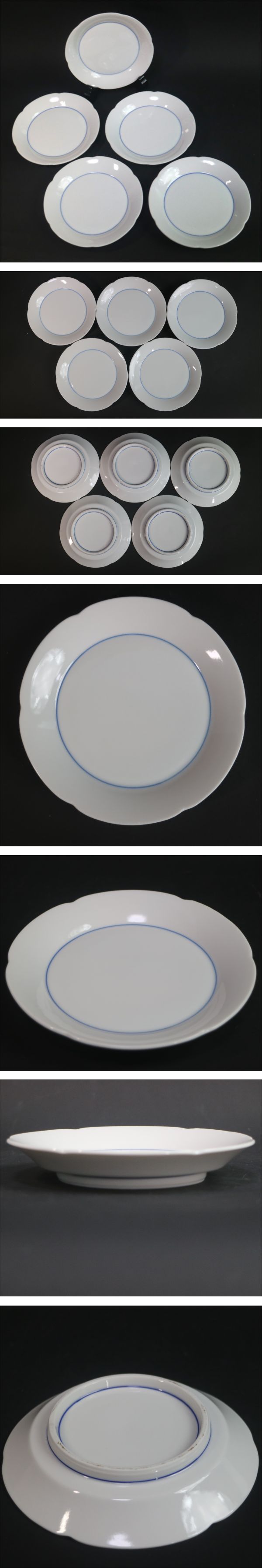 白磁 小皿 5枚セット ブルーライン デッドストック 幅(約)13㎝ 收藏