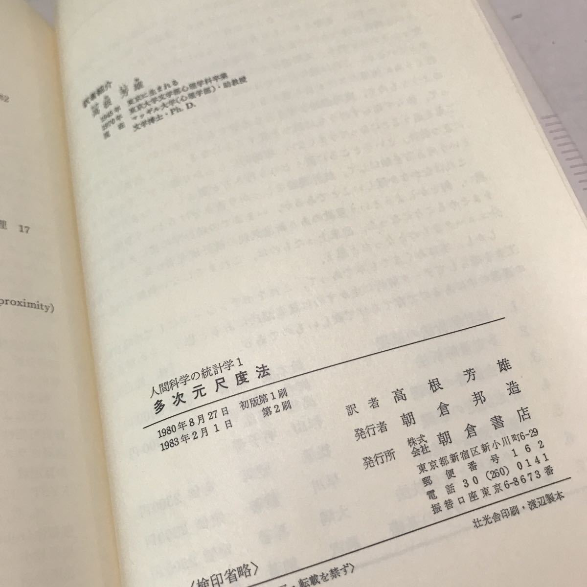 230207▲S05上▲ 人間科学の統計学1 多次元尺度法 J.Bクラスカル・Mウィッシュ/著 高根芳雄/訳 1983年発行 朝倉書店 收藏