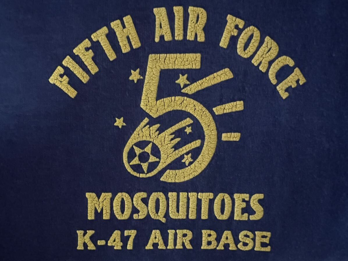 中古 MADE IN USA USAF FIFTH AIR FORCE MOSQUITOES K-47 AIR BASE コットンTシャツ BUZZ RICKSON MEDIUM (38〜40) AIR FORCE BLUE 收藏