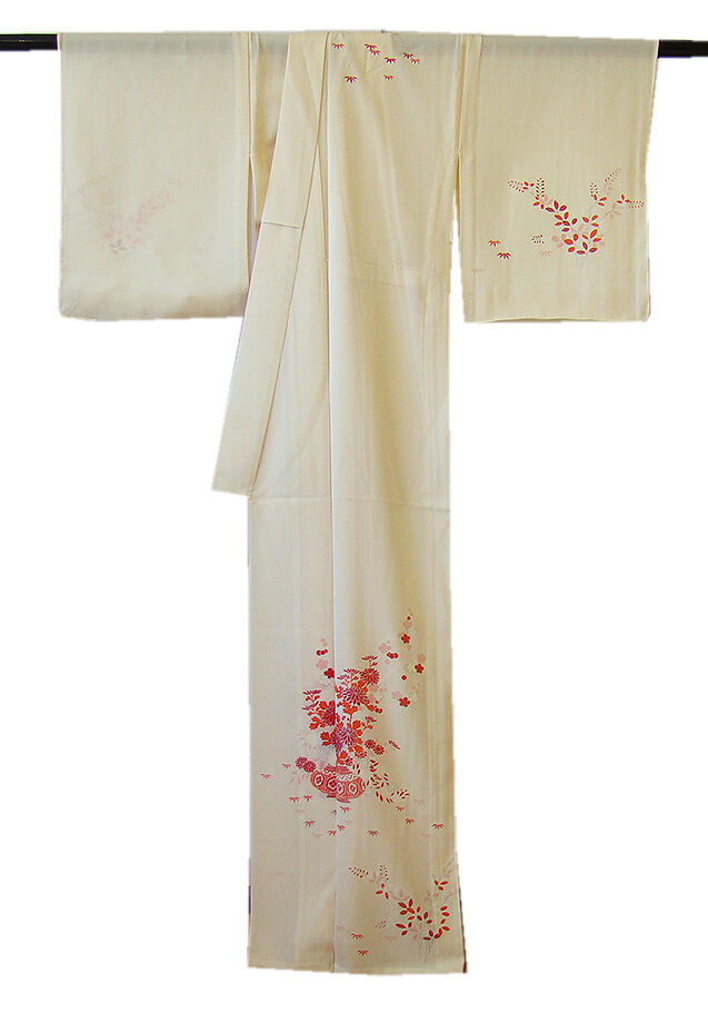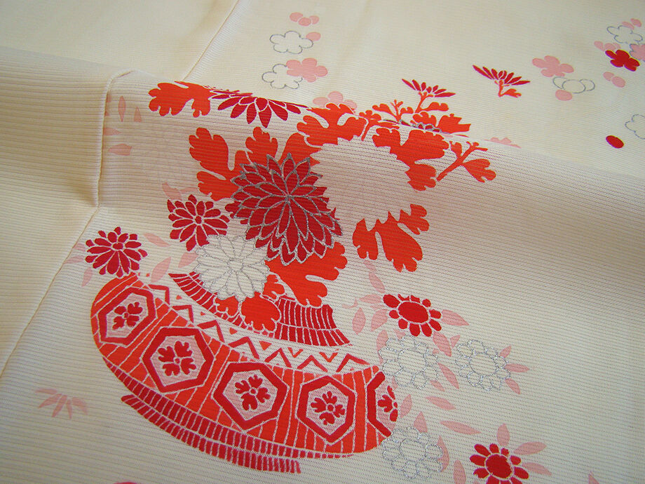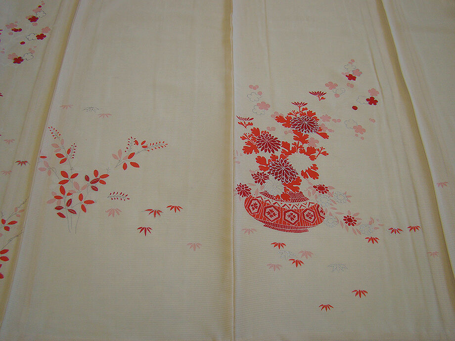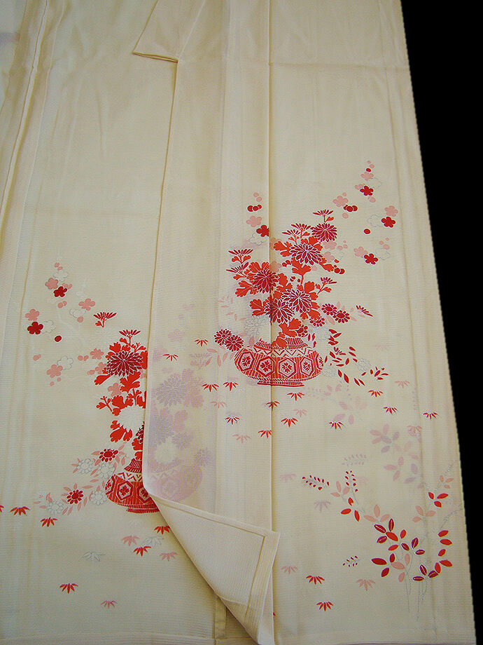 | 商品説明 | こちらのお品は夏物でございますので、7月~8月にお召頂ければと思います。 絽と言えば、紗と双璧を成す夏のお着物の生地で、その最大の魅力は絶妙の透かし加減です。 清涼感溢れる地の風を通すしなやかさは、夏に着物を着るという贅沢を 快適に楽しませてくれることでしょう。 着物には、大きく分けて「袷(あわせ)の着物」と「単衣(ひとえ)の着物」と「夏着物」があります。 反物(表地)を着物に仕立てるときに、裏地類をつけるものを袷の着物、 つけないものを単衣の着物と呼び、胴裏や八掛といった裏地がつかない一枚ものの着物です。 また裏地がないため、座る時などにヒップのラインが目立たないよう、 居敷当て(いしきあて)の生地をつけることもあります。 居敷当ては付いておりません。 とてもしなやかなさらっとした肌触りが極上の着心地を誘う滑らかな「駒絽」の生地、 薄卵色地に朱赤、紅梅色等の花木柄の染柄に銀彩加工仕立て、 また、バチ衿仕立てとなっております。 着る人や見る人を清涼感に包み、女性の凛とした美しさを醸す様な、 洗練された印象を身に着けるお着物に仕上がっております。 |