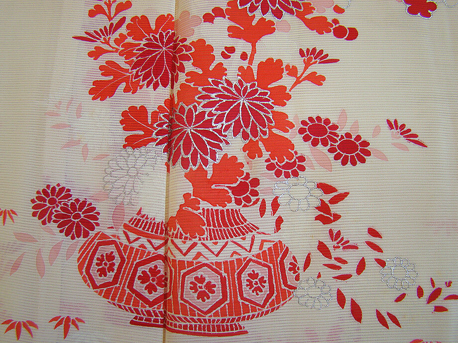 | ちょっと一言 | 「絽」の最大の魅力はやはり涼感たっぷりとした演出に絶妙の透かし加減です。 とても涼やかで、さらっと着心地良く大変に滑らかな風合を醸し、シンプルな色彩の世界に 帯や小物等の組み合わせにより自分らしい個性を放ち無数のコーディネートをご堪能頂けお愉しみ頂けます。 清爽感溢れる夏の着物、絽は和のお洒落の真髄です。 |
