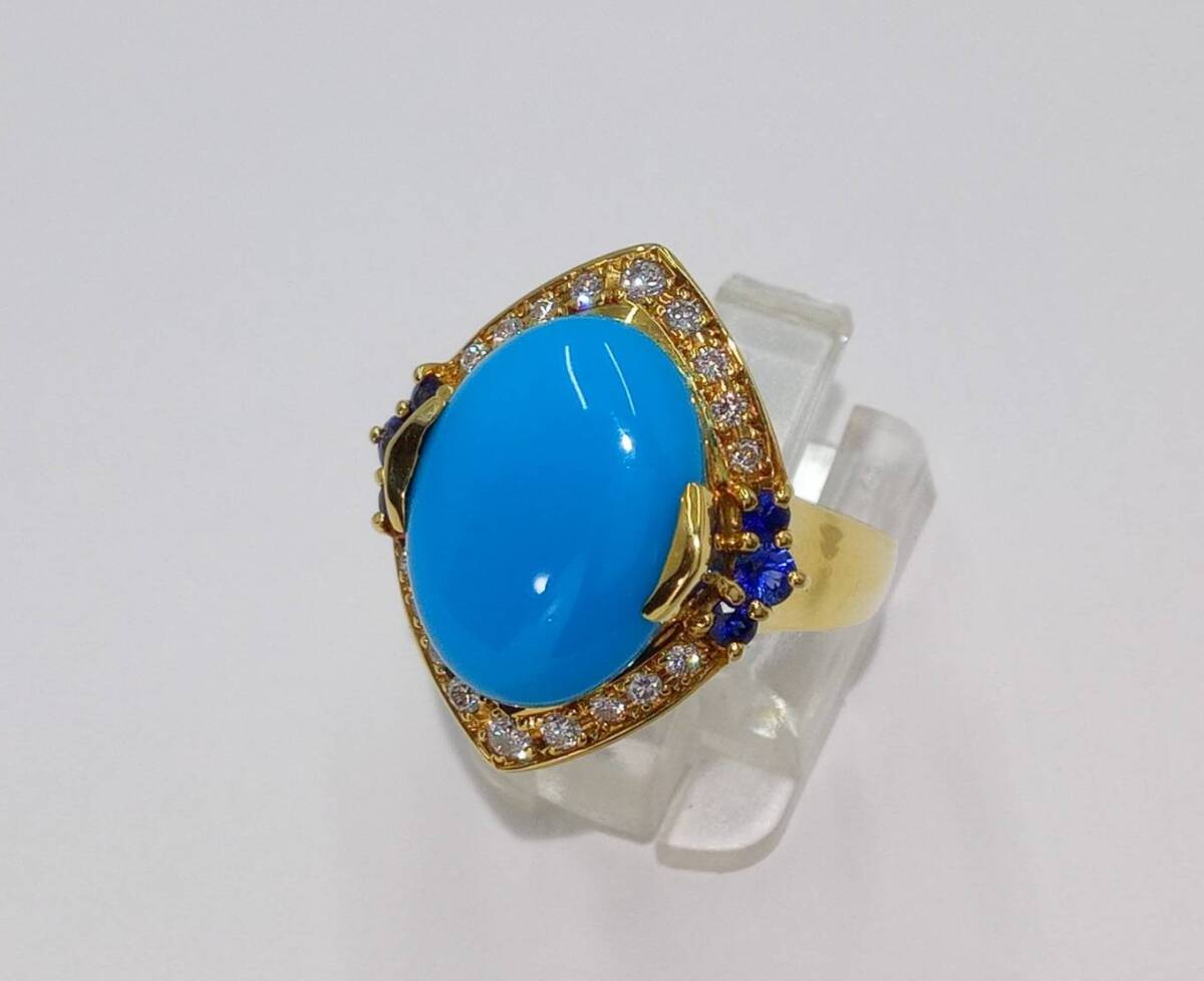 K18 YG 10.3g トルコ石 1個 サファイア 0.32ct ダイヤ 0.28ct リング 15号 收藏