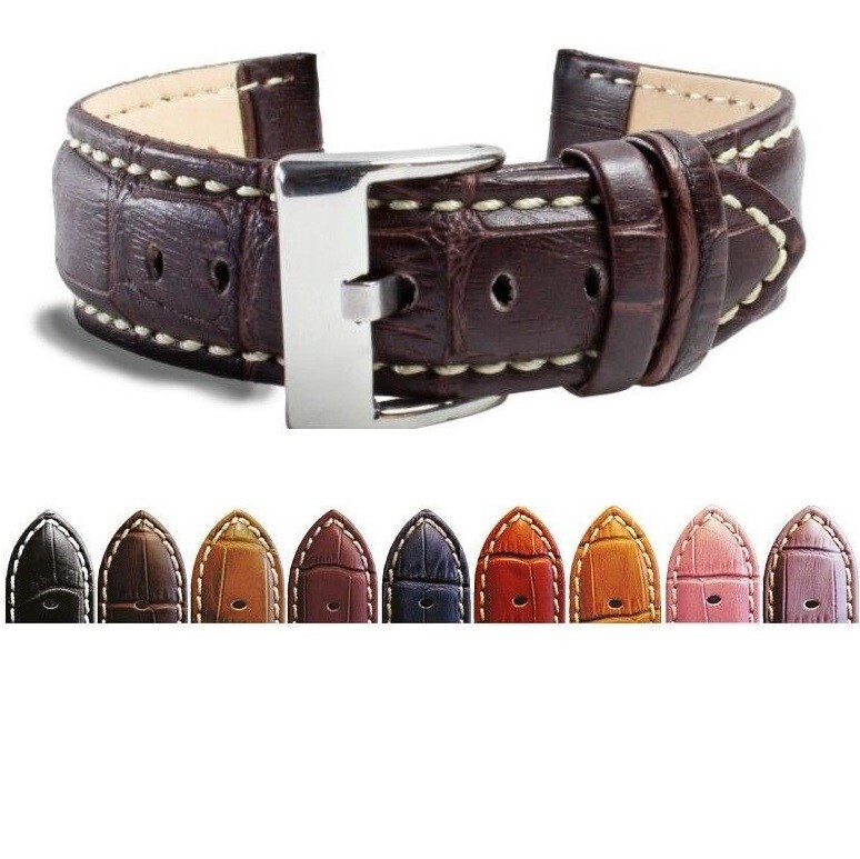 Diloy 腕時計ベルト 20mm イタリアン カーフレザー アリゲーター グレイン 378パディド パープル 收藏