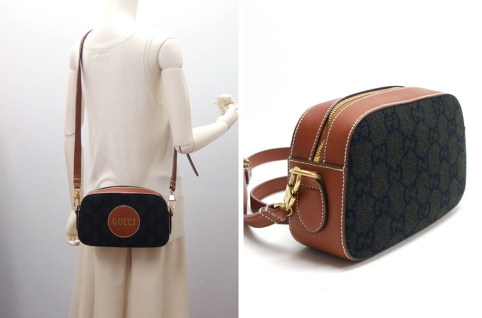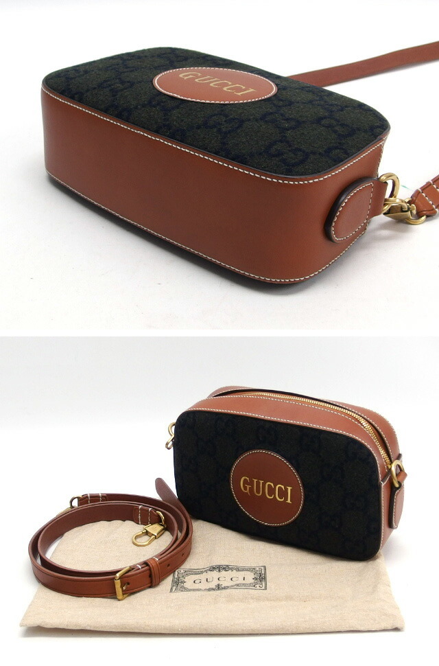 | 商品名 | ショルダーバッグ メッセンジャーバッグ スクリプトロゴ GG柄 ウール 羊毛 レザー チャコールグレー ブラウン(茶) ファスナー開閉 アンティークゴールド金具 ショルダーストラップ(着脱可能) 斜め掛け クロスボディ 671625 レディース |