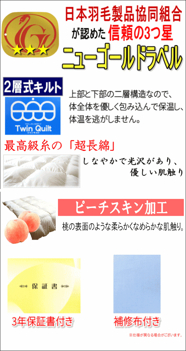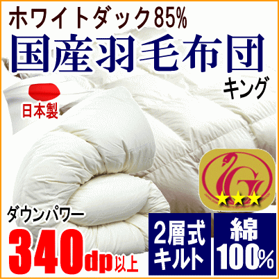 羽毛布団 キング ホワイトダック 85% ダウン ニューゴールドラベル 340dp以上 二層キルト 超長綿 綿100% 日本製 收藏