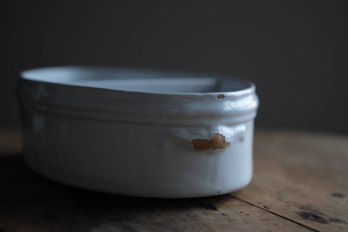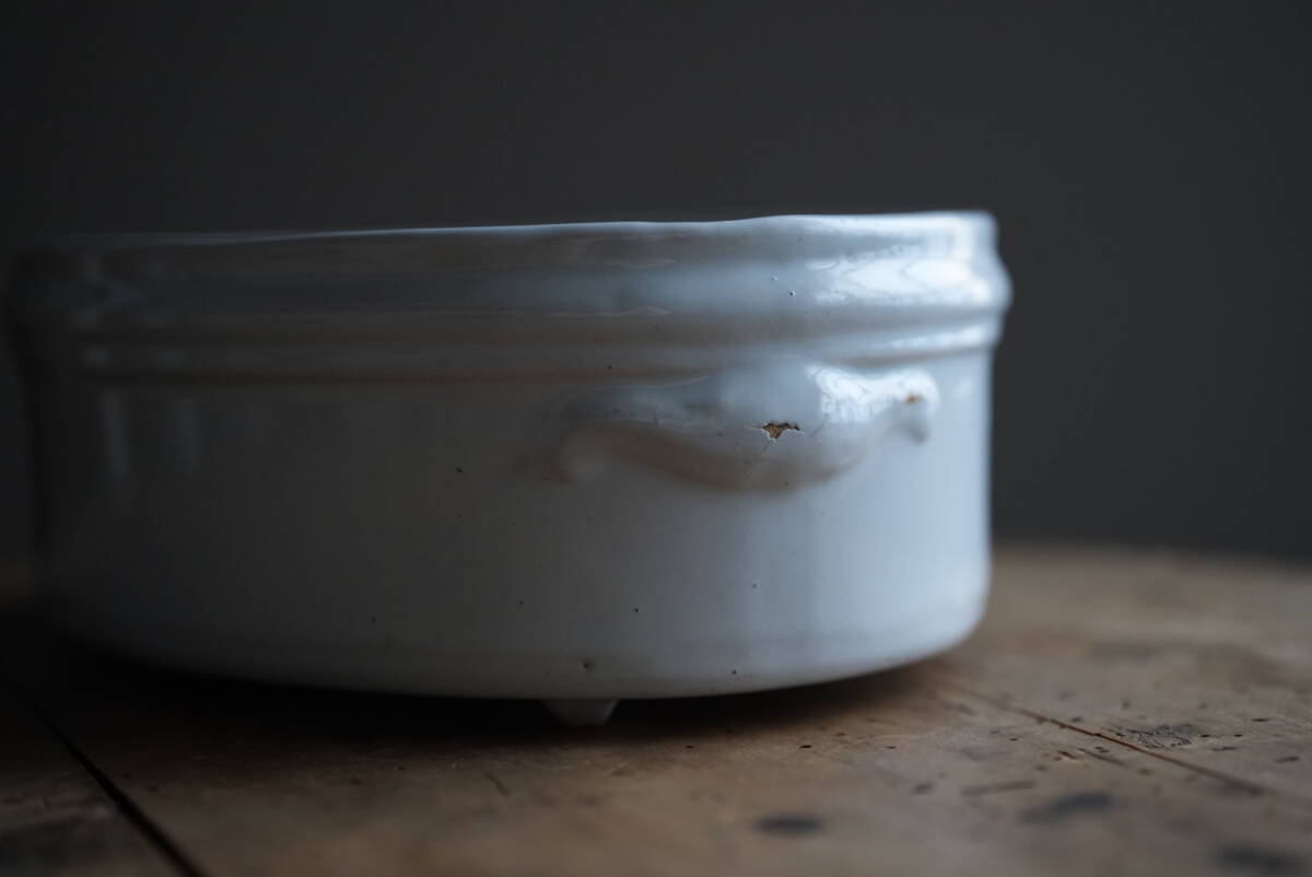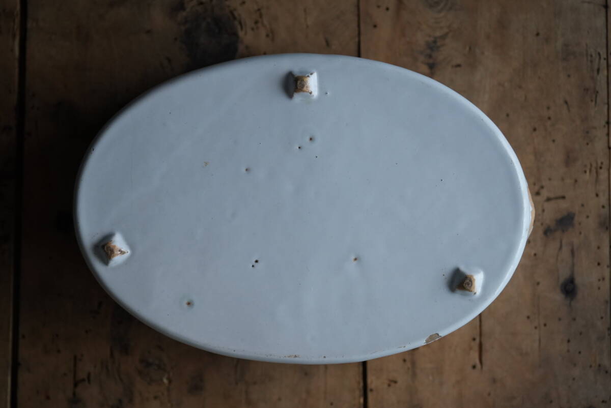 古いファイアンス白錫釉ジャルディニエール オーバル鉢 / 1700年台後半(18世紀)・フランス / アンティーク 古道具 收藏