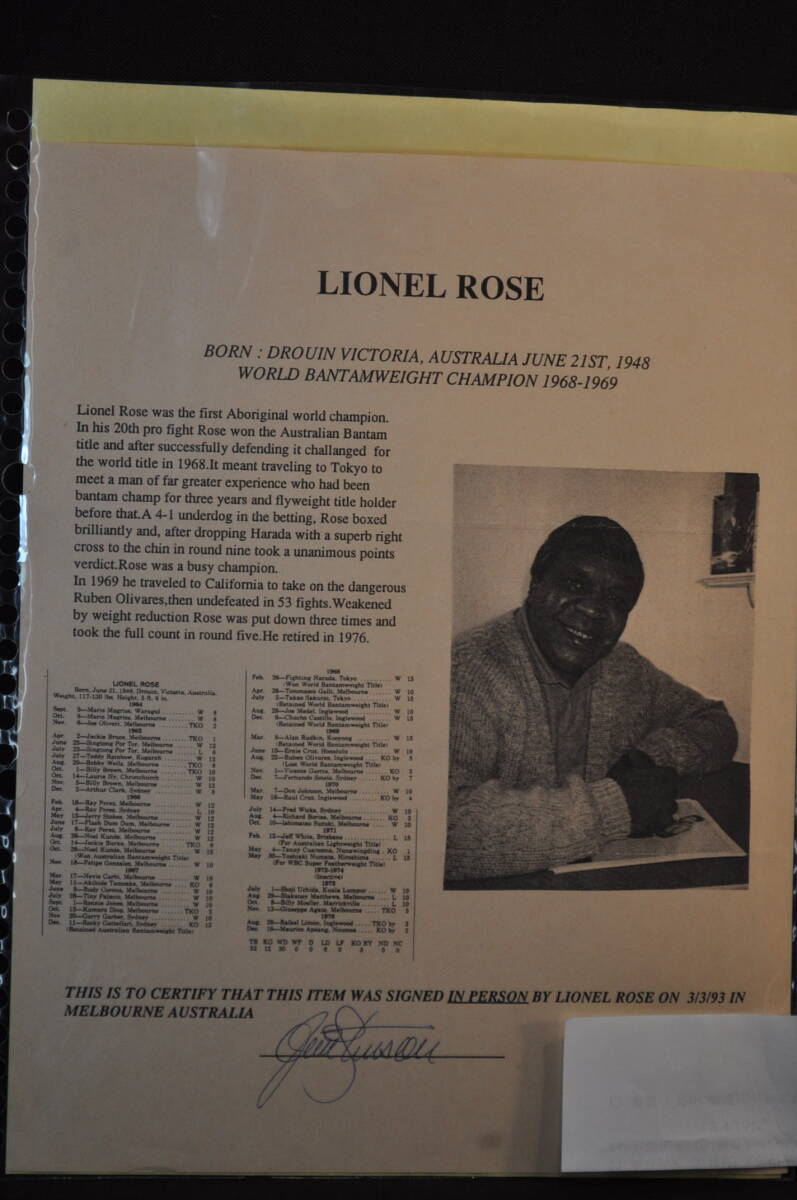 直筆 世界チャンピオン ライオネルローズ サイン サイン時の写真&日付&戦績付 入手者署名入り真筆証明付 約250x200ミリ 收藏