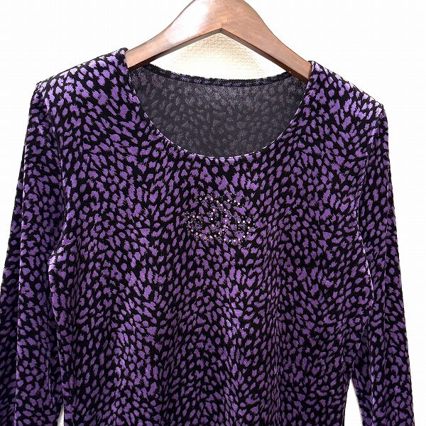 #wnc 伊太利屋 GKITALIYA カットソー 7 紫 黒 ベロア調 ヒョウ柄 ラインストーン 小さいサイズ タグ付き 新品同様 レディース [929673] 收藏