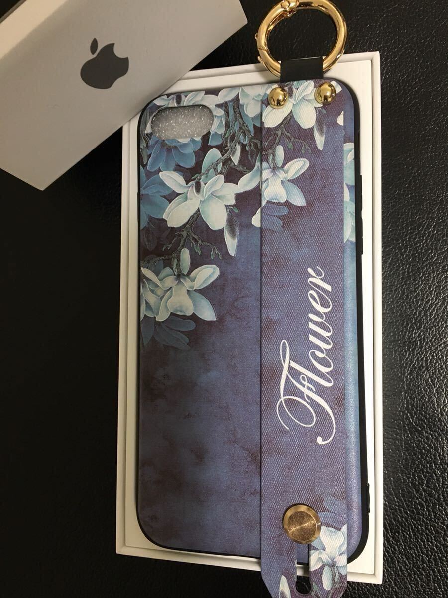 送料込み★ホルダーベルト付きiPhoneSE3、SE2/8/7用スマホケース★フラワーデザイン ブルー 收藏