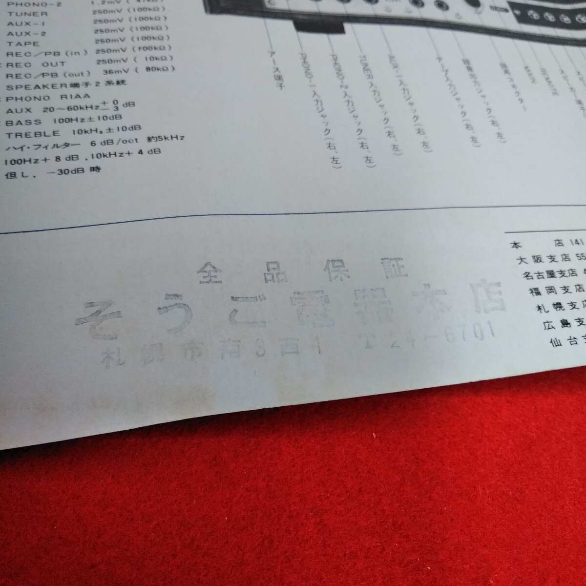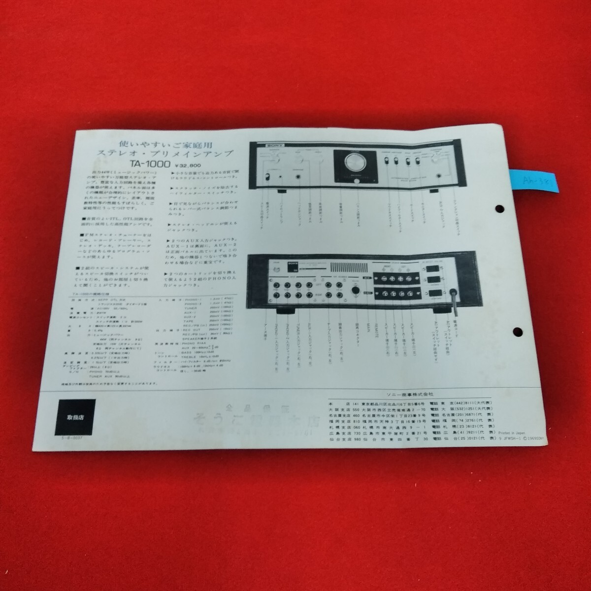 Ah-381/SONY オーディオコンポーネント ステレオプリメインアンプ TA-1000 ソニー カタログ 折れ汚れあり。/L6/70307 收藏