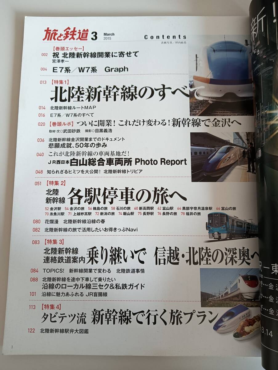 旅と鉄道 北陸新幹線の旅 2015/3 永久保存版増刊 白山総合車両所 E7系/W7系 各駅停車の旅 【即決】 收藏