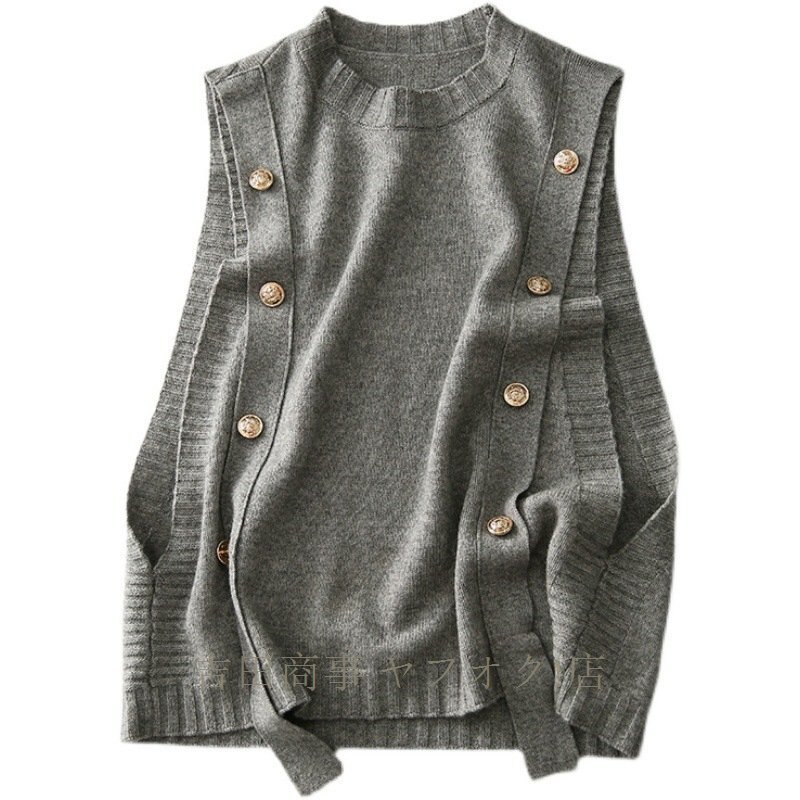 ☆新品お色選択可Fサイズ 春 ニットベスト レディース おしゃれ 白シャツ+ベスト 2点セット 長袖トップス 気質 ブラウス グレー 收藏