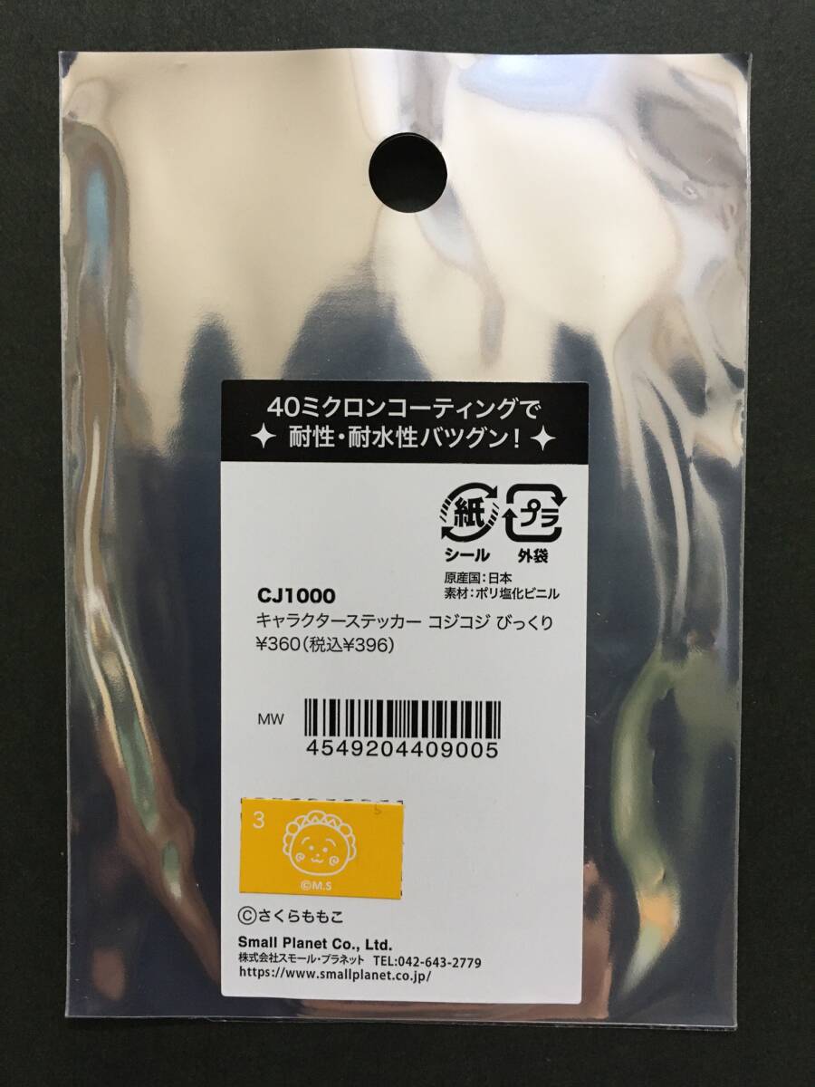 COJI-COJI/コジコジ キャラクターステッカー☆彡 コジコジびっくり☆ さくらももこ 耐性・耐水性 新品未開封品 スモール・プラネット 收藏