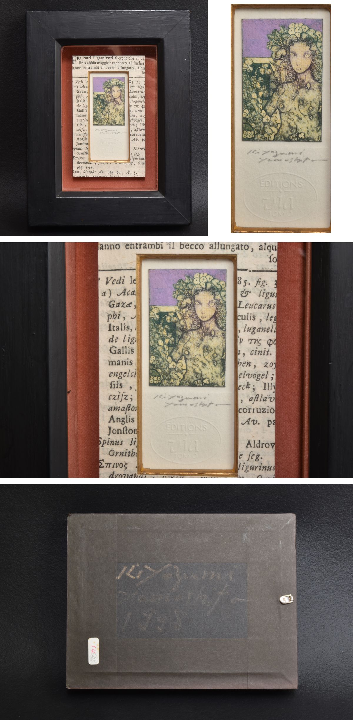 5649 山下清澄 ミニマチュール 色彩銅版画 サイン有 額装 收藏