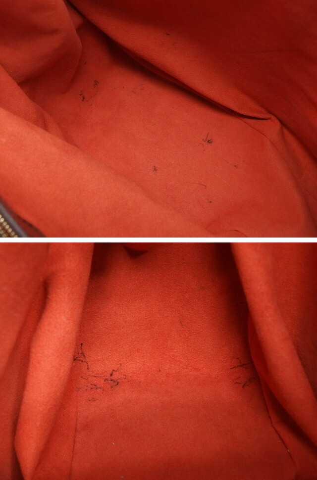 | 商品ランク | [中古AB] 表面に角スレ、レザー(パイピング含む)にスレ・傷・薄汚れ、持ち手に型崩れ・シワ・スレ・小傷、金具にスレ・傷・メッキ剥がれ・クスミ・劣化、内布(ポケット内含む)にペン汚れ・スレ・小傷・薄汚れがあります。使用感はありますが、外観はきれいな商品です。 |