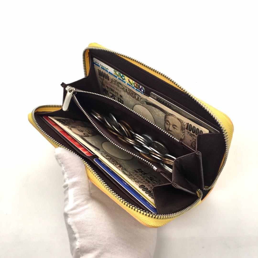 <パステルイエロー>長財布 ラウンドファスナー メンズ レディース 牛床革 收藏