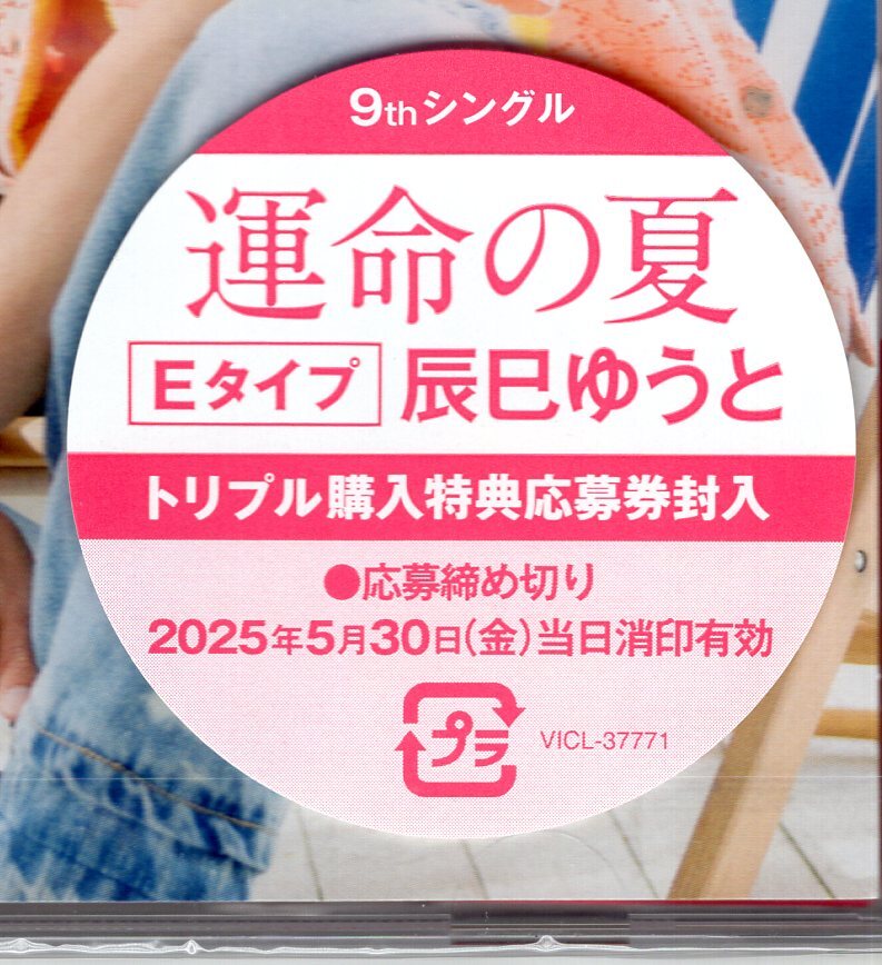 辰巳ゆうと/運命の夏【Eタイプ】/デビュー8年目 9thシングル 「運命の夏」追撃盤!トリプル購入特典応募券封入!未開封品! 收藏