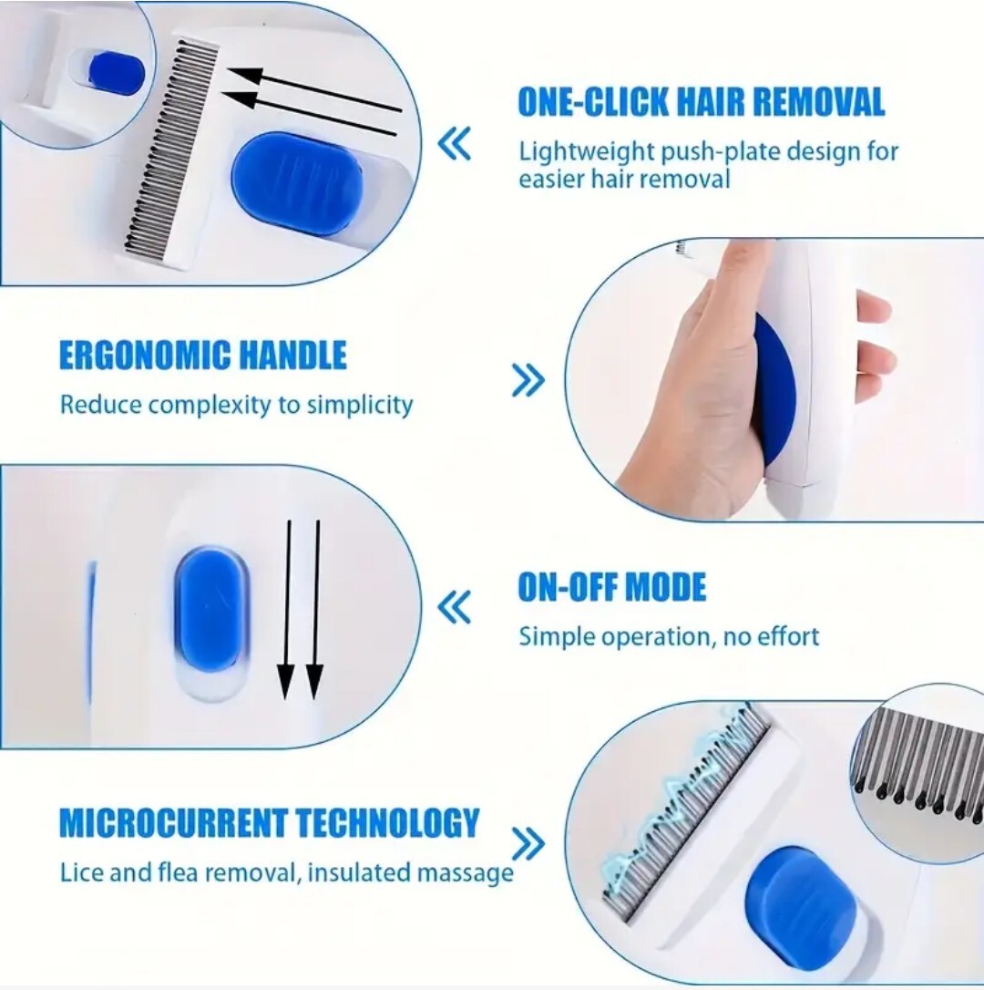 単3電池2個仕様で微弱な電流でノミやノミの卵を取り除く使いやすいコームです。