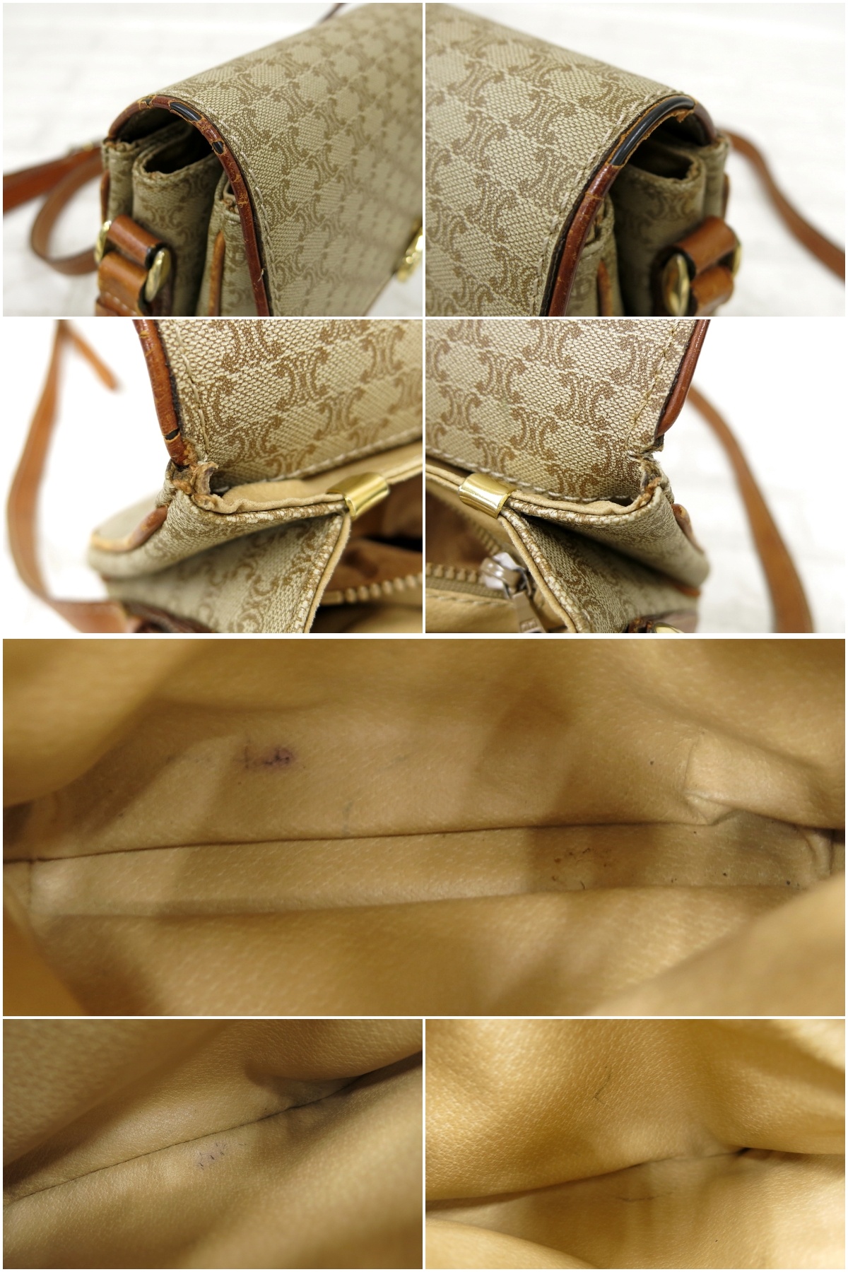 ◆CELINE セリーヌ◆マカダム◆PVC カーフ レザー 本革◆ショルダー バッグ◆ベージュ キャメル ゴールド金具◆フラップ◆斜め掛け◆A11675 收藏