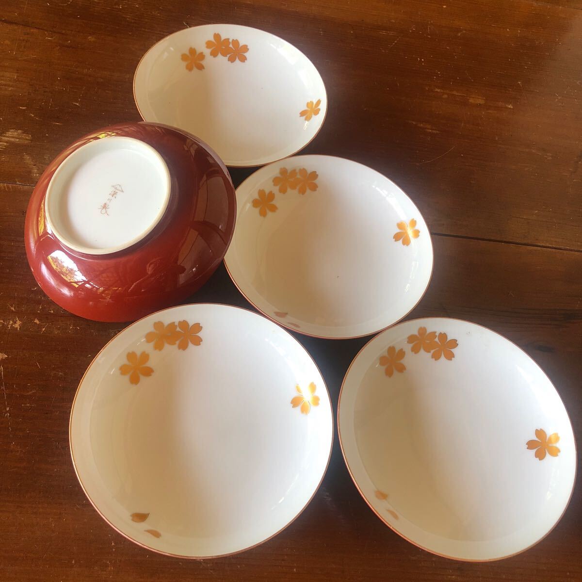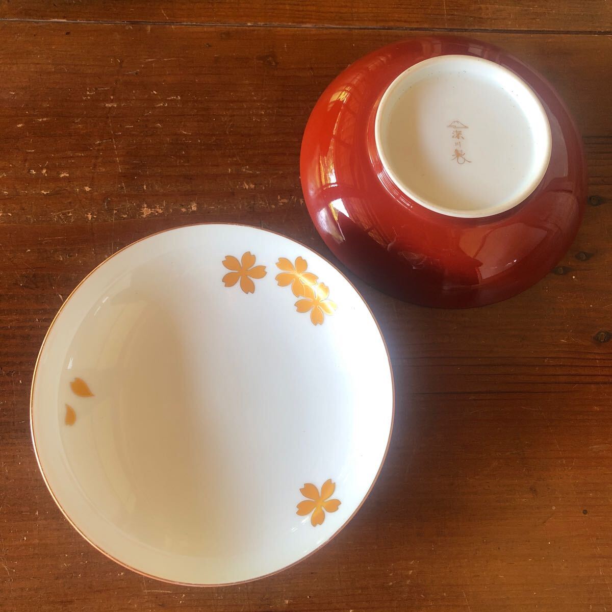 〈送料無料〉深川製磁 桜 赤 金彩 小皿 盛皿 銘々皿 取皿 さくら 深川 深川製 收藏