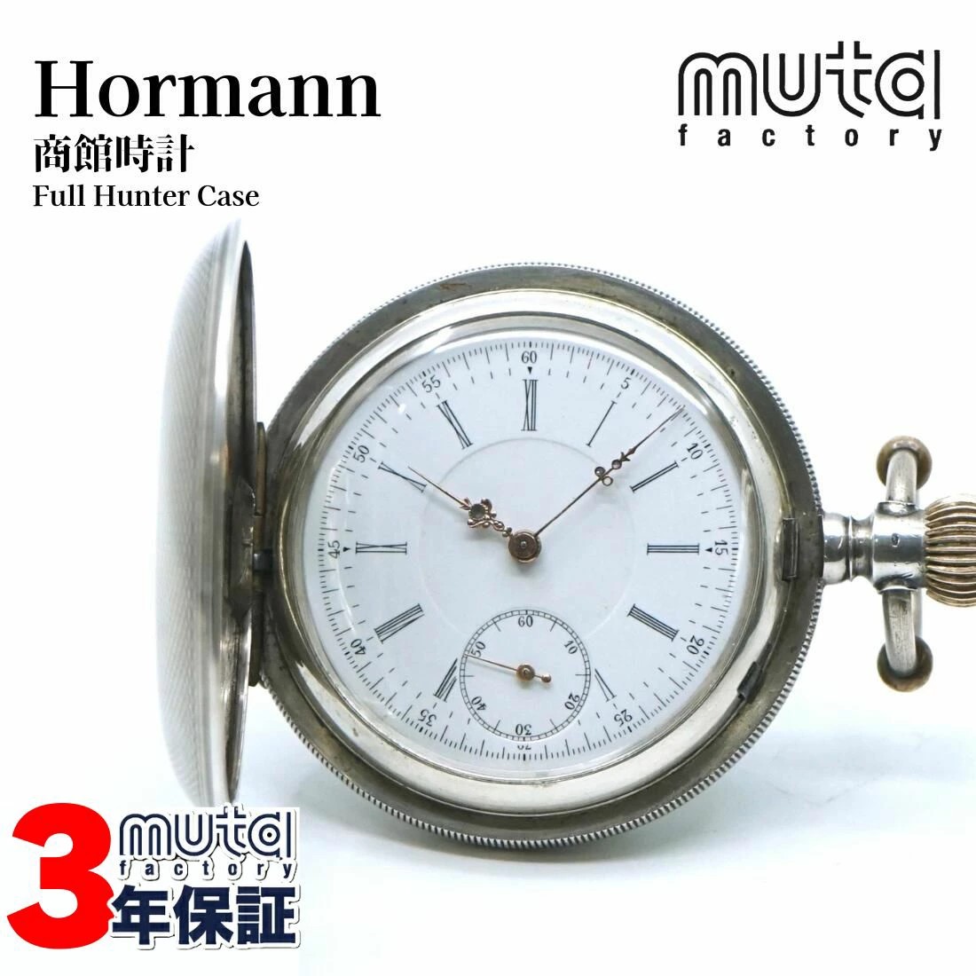 Hormann 懐中時計 商館時計 手巻き SV800 コロン商館 鶴マーク フルハンターケース OH済み 1年保証 W0237 收藏