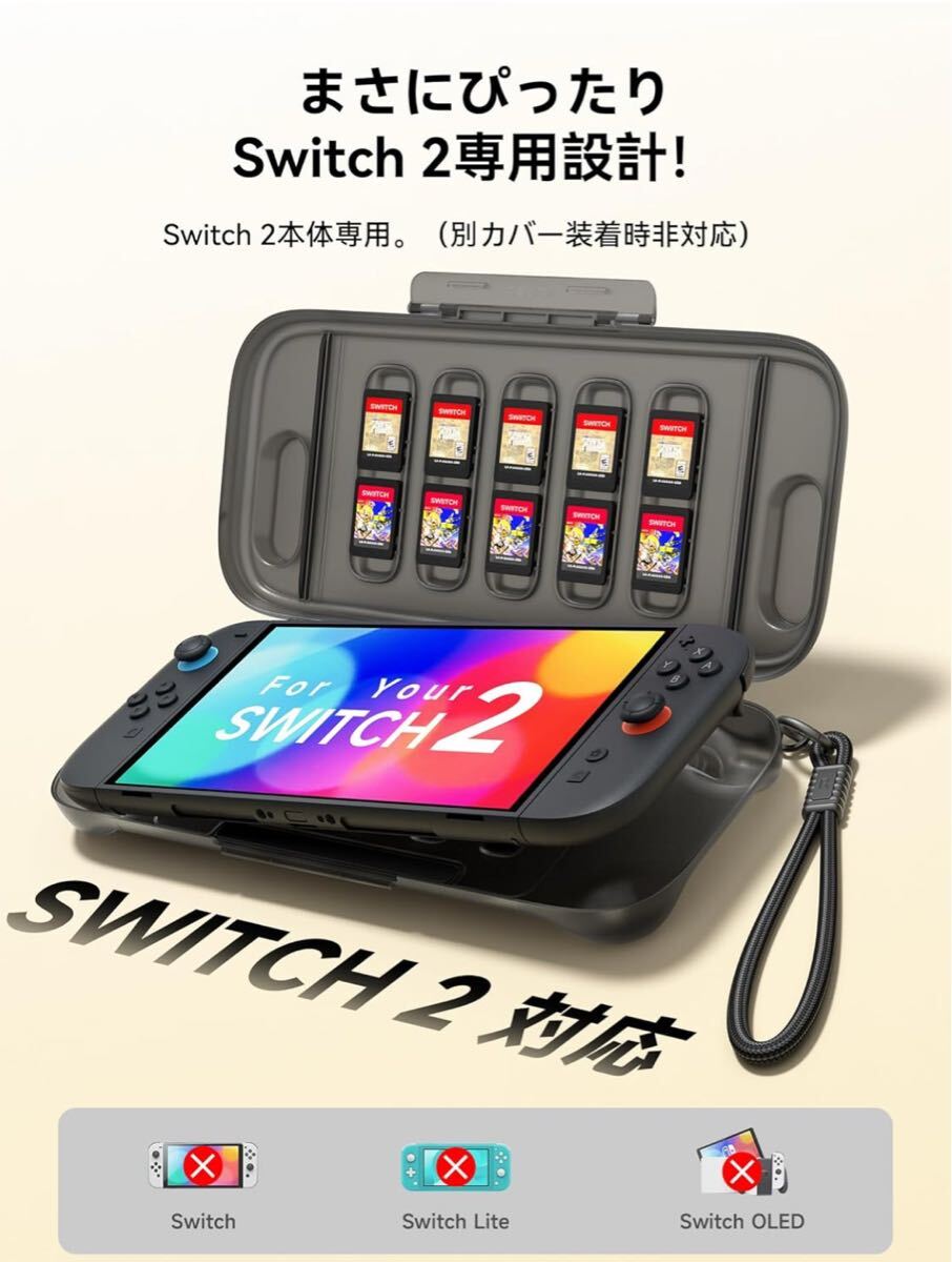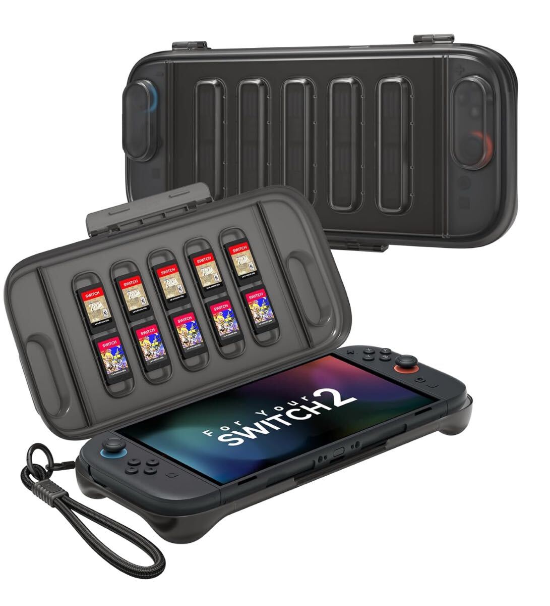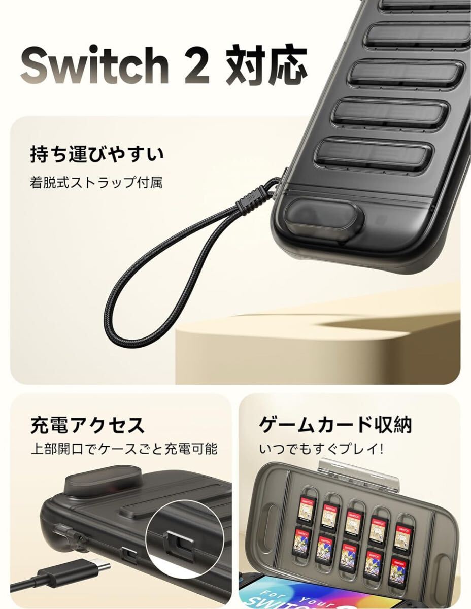 k③【携帯便利】Switch 2 (2025) 対応 保護ケース|JSAUX ハードPCケース・全包カバー・軽量・ゲームカード10枚収納・防塵・半透明ブラック 收藏
