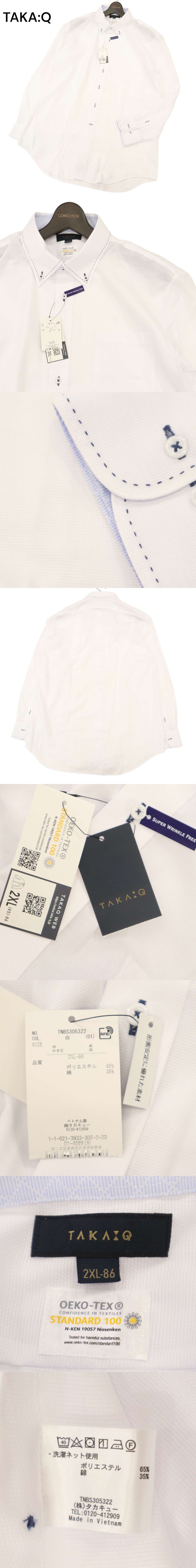 【新品 未使用】 TAKA:Q タカキュー 通年 形態安定★ 長袖 ドレスシャツ Yシャツ Sz.2XL-86 メンズ 白 ビジカジ 大きい 收藏