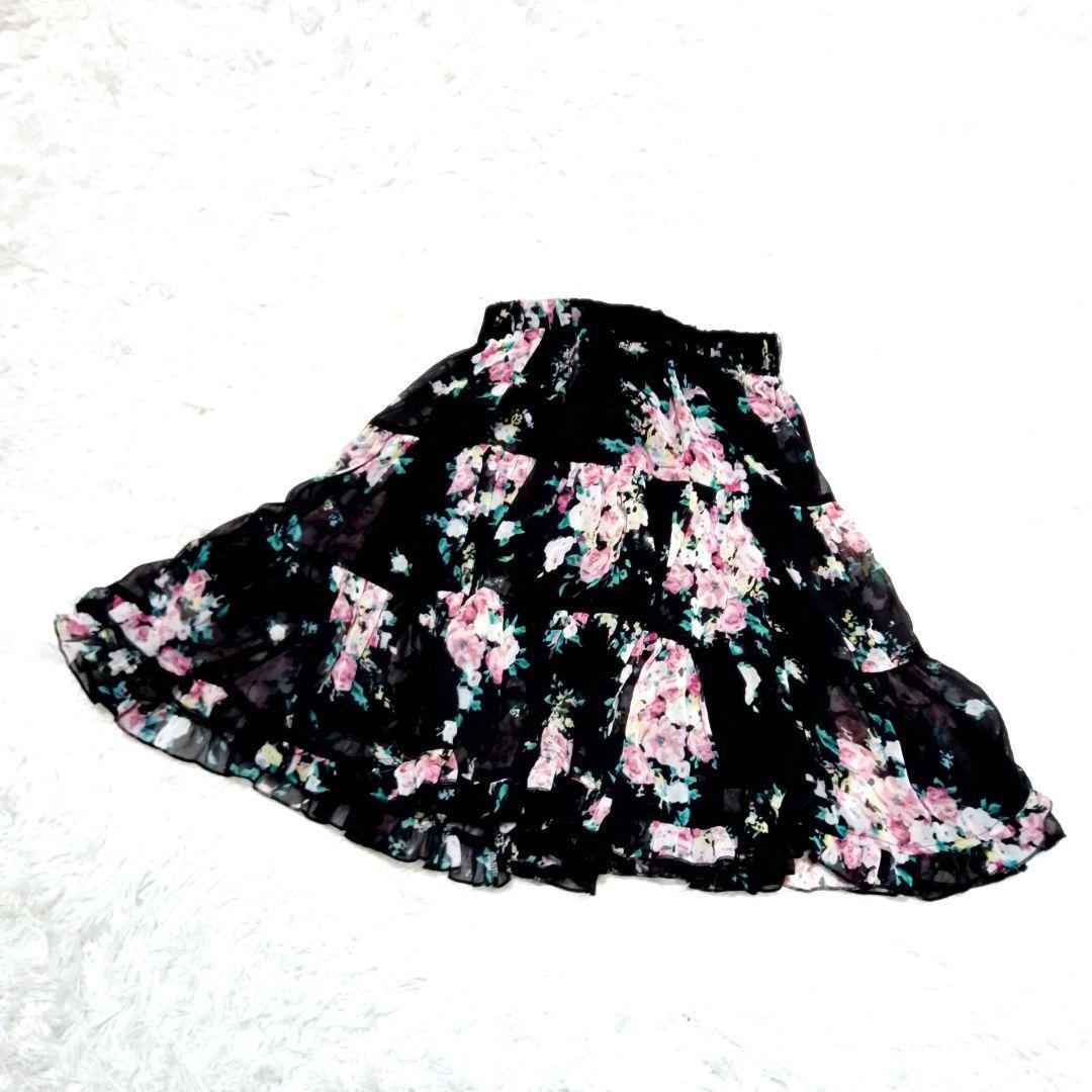 13 CLOSE UP クローズアップ レディーススカート ミニ 花柄黒 ゴム 收藏