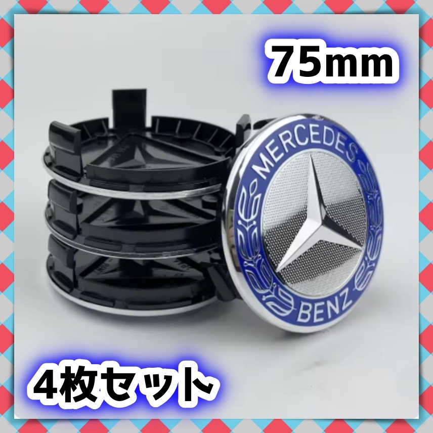 4個セット メルセデス ベンツ ホイールセンターキャップ 75mm ハブキャップ タイヤ カバー スリーポインテッドスター ネイビー ブルー 收藏