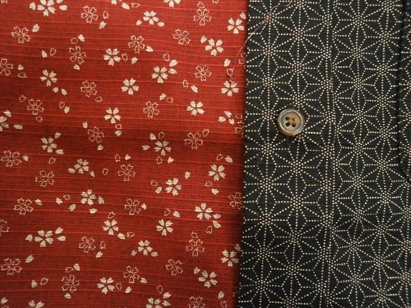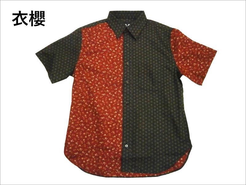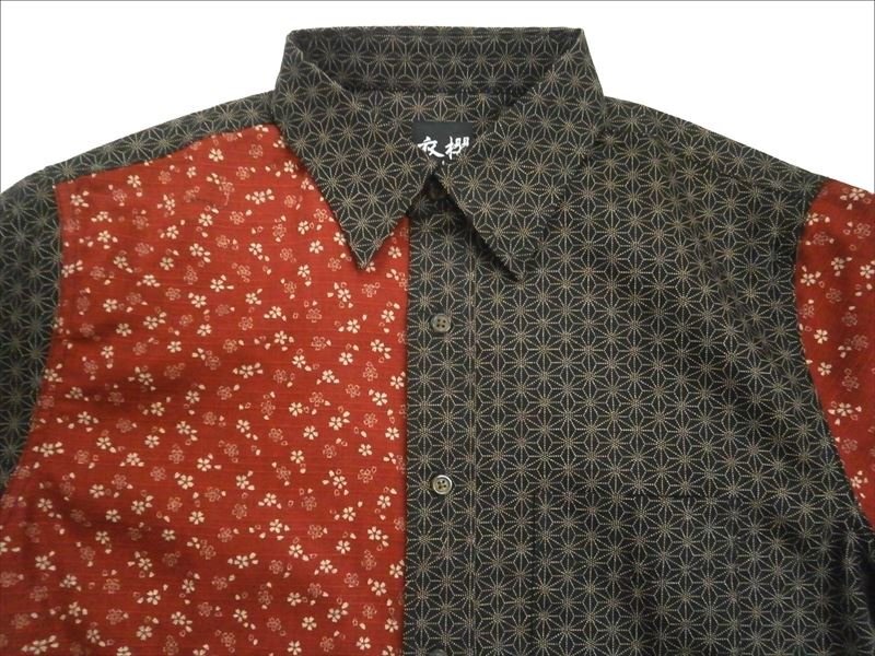 衣櫻 ころもざくら/半袖シャツ SA-1538 小桜×麻の葉 切替 半袖コットン レギュラーシャツ 和柄 レッド/ブラック 日本製 L 新品 收藏