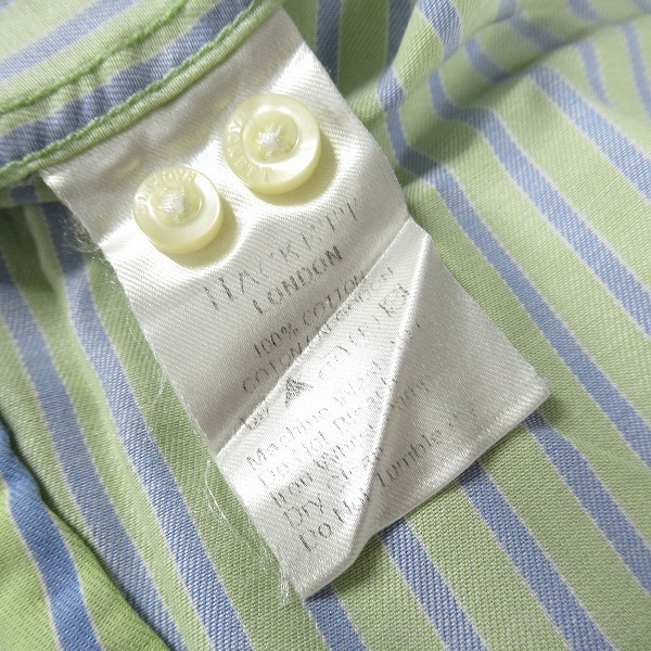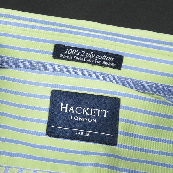 #anc ハケットロンドン HACKETT LONDON 長袖シャツ L 黄緑 青 ストライプ ボタンダウン ポケット 美品 メンズ [941705] 收藏