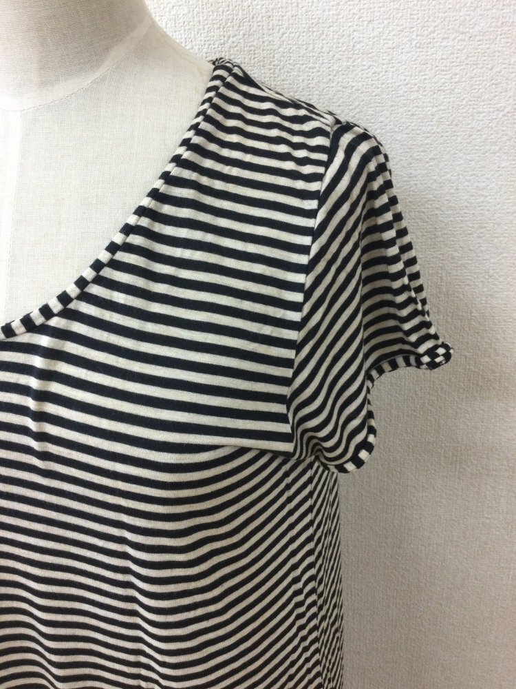 ユナイテッドアローズ カットソー生地ワンピ 黒とベージュボーダー 半袖 收藏