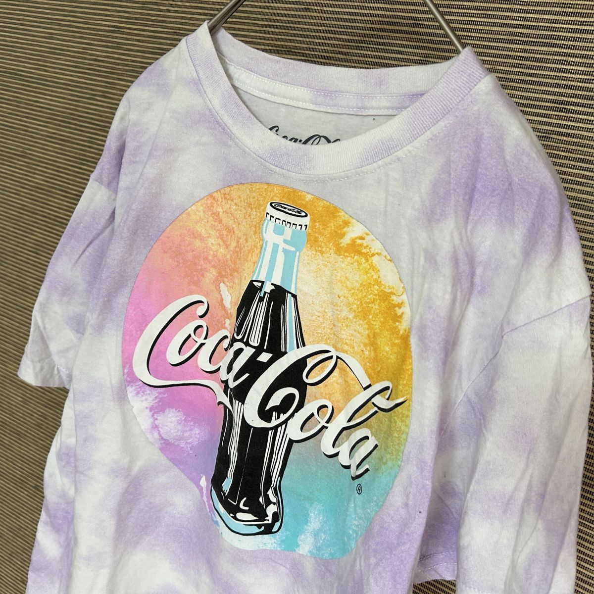 コカコーラ 半袖Tシャツ 白紫 デカロゴ タイダイカラー ドリンク*5 古着 入手困難 激レア 希少 人気 ビッグロゴ カラフル 收藏